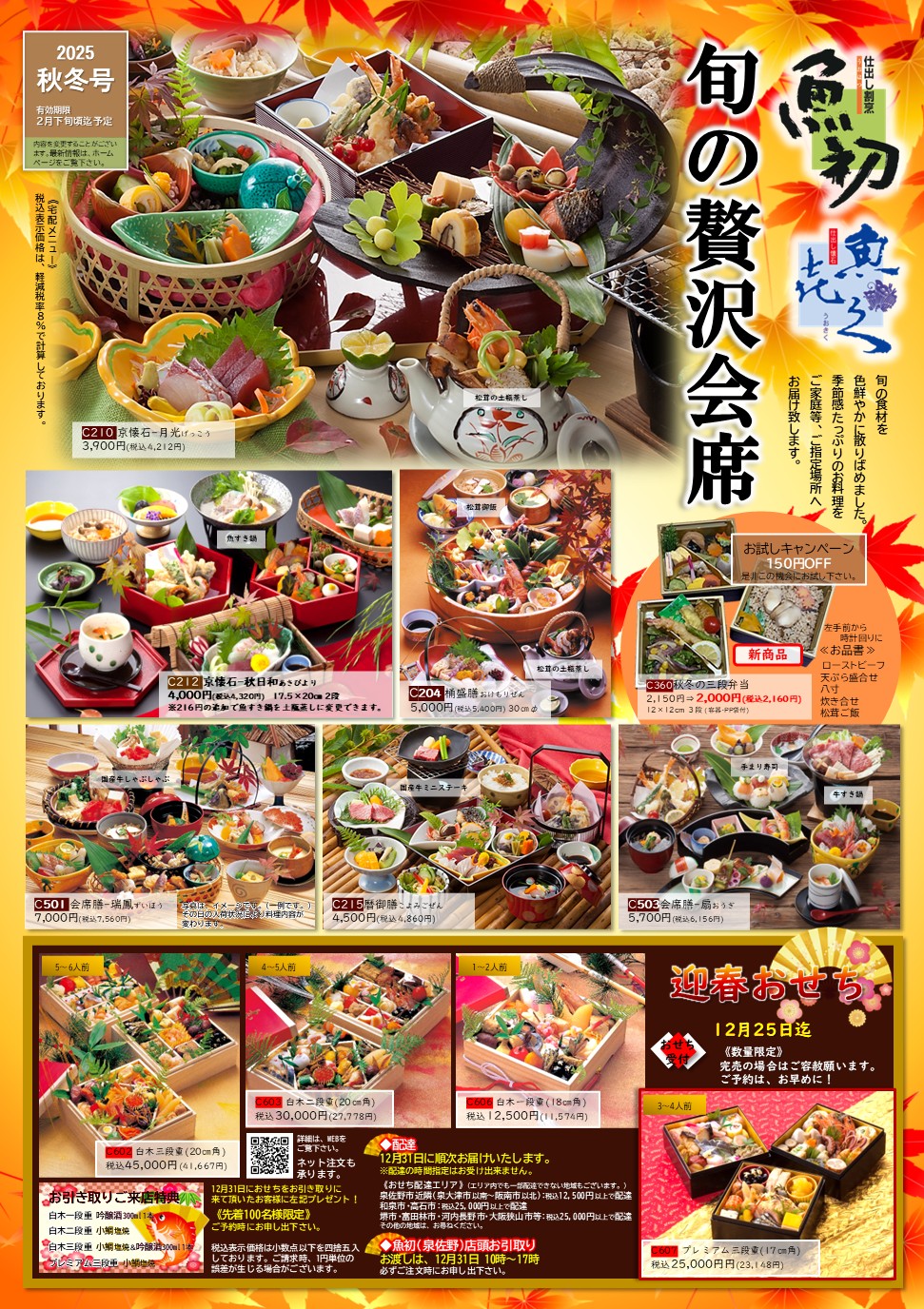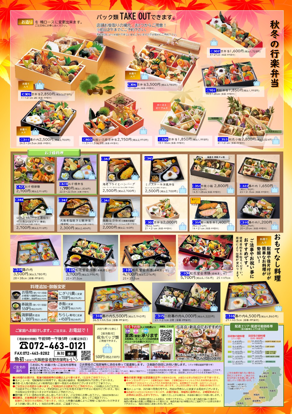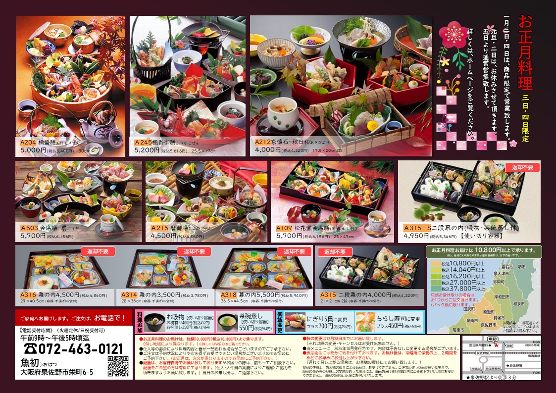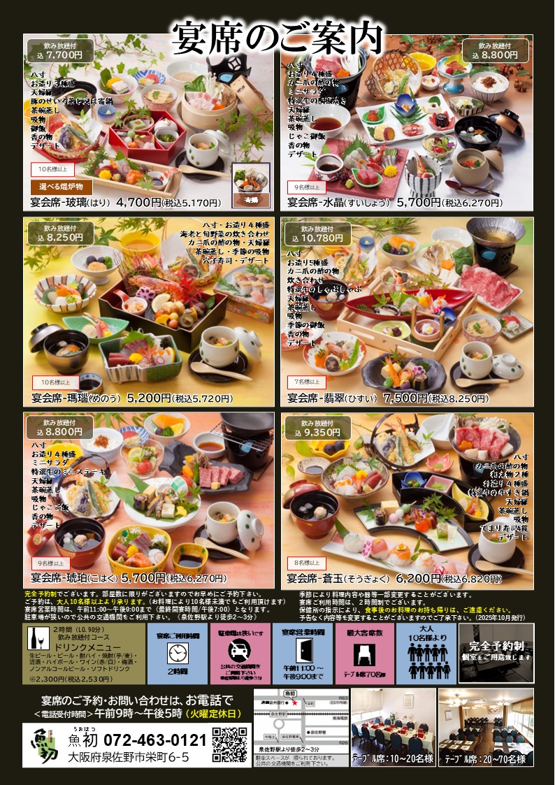 仕出し割烹 魚初大阪府泉佐野市栄町6-5 Tel 072-463-0121 Fax 072-463-8282 受付時間 9:00〜17:00 定休日 火曜 登録番号:T4120101056966 info@uohatsu.com